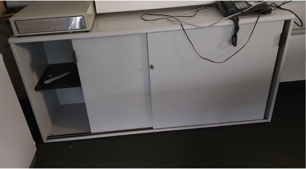 • 4 Schubladen (für Hängeregister) und 2 Flügeltüren abschließbar (Schlüssel vorhanden)