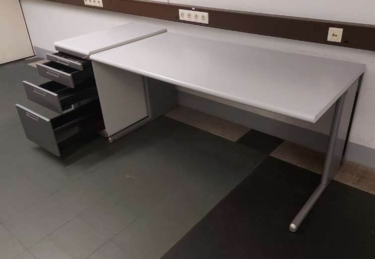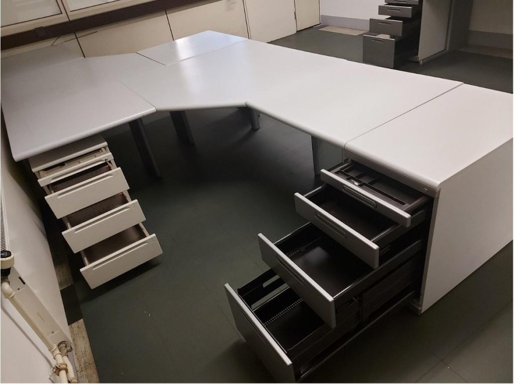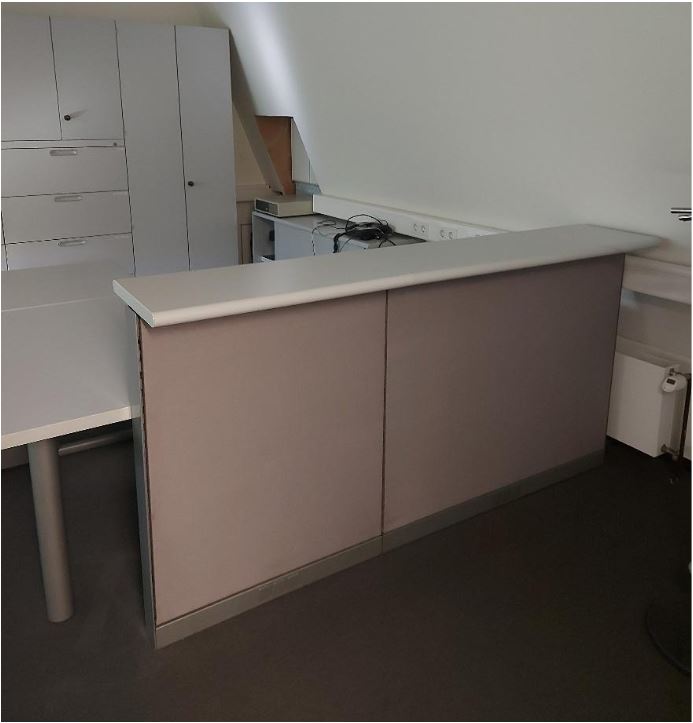 - Im Zuge unseres Firmenumzugs haben wir am alten Standort verschiedene hochwertige Büroeinrichtungen. Es handelt sich dabei um einheitliche Arbeitsplätze sowie dazu passende Kombinationsmöbel aus einer durchgängigen Produktlinie, die flexibel miteinander kombiniert werden können. Ein typischer Arbeitsplatz besteht aus einem robusten Schreibtisch (Maße: 120 x 80 cm) und einem passenden Rollcontainer (Maße 45 x 80 cm). Ergänzend dazu stehen weitere Möbelstücke