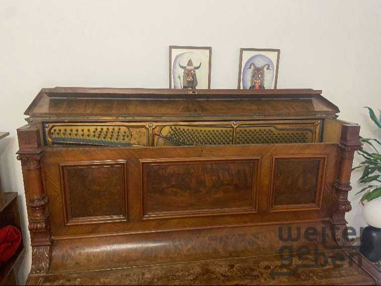 Oben ein Wasserfleck und ein kleines Stück Holz fehlt oben links in der Verzierung (siehe Bilder)nFamilienklavier, wurde sehr geliebt und stand immer bei uns zu Hause.