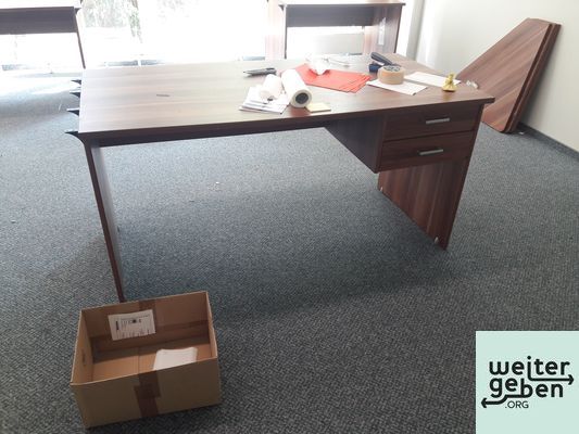 2 Schreibtische 150x75cm, 4 Schreibtische 115x75cm, passende Eckverbinderplatten in Teltow werden gespendet