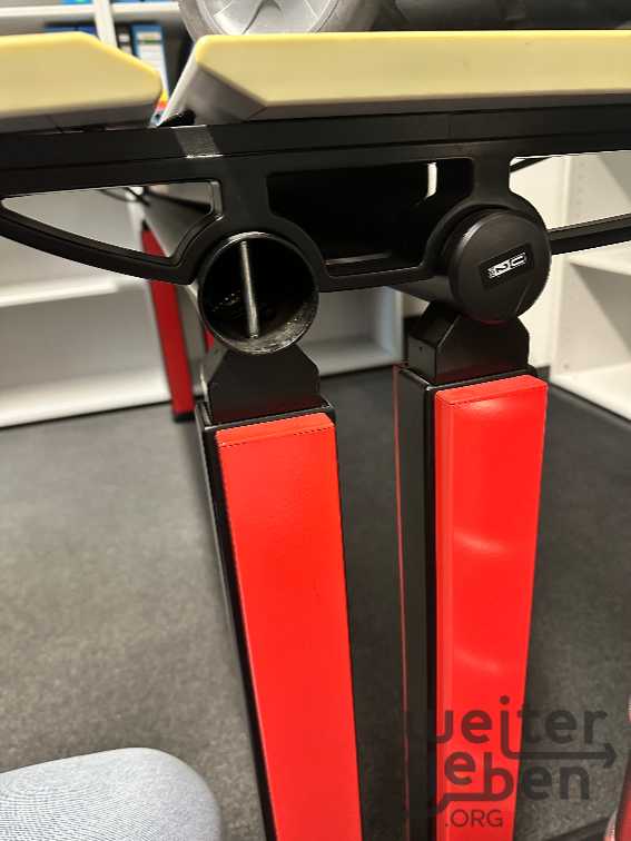 Es gibt diesen grauen Tisch einmal mit 80 cm Tiefe – hier sind 18 cm Stellfläche für die Monitore und es gibt diesen Tisch mit 100 cm Tiefe – hier sind 38 cm Stellfläche für die Monitore. - die Tischplatten kann man nicht kippen, der „Vorsprung“ hinten ist der Platz für die Monitore, durch den Schlitz kann man dann eben die Kabel hochziehen, die Kabelwanne ist ebenfalls auf einem Bild abgebildet und ist zum bestücken ausziehbar und im Anschluss wieder versteckt 😊. Man kann mit einem Seil die beiden Platten auseinanderziehen.