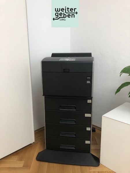 in München wird ein Farblaserdrucker mit viel Zubehör einer gemeinnützigen Einrichtung gespendet